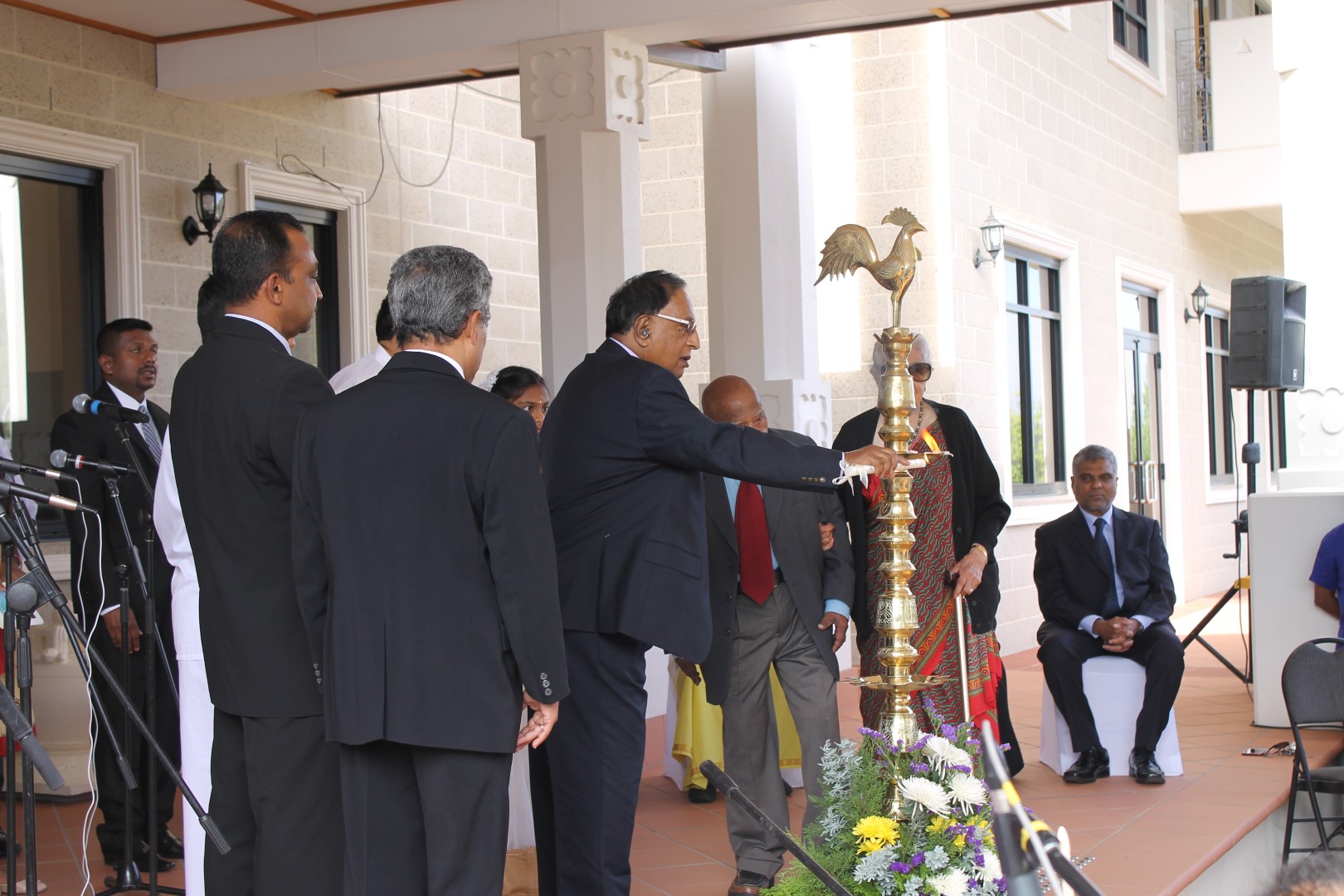 After the hoisting of the National Flag by High Commissioner Skandakumar, school children supported by adults sang the National Anthem in Sinhala and Tamil which was followed by two minutes silence to honour all those who sacrificed their lives for the Independence , sovereignty and territorial integrity of Sri Lanka.